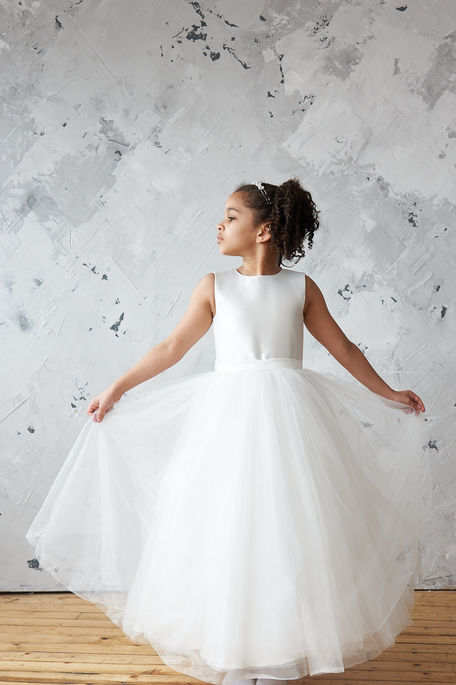 Introducing Style 2301, the perfect dress for a traditional wedding. With a plain satin top and full tulle skirt, this design is both classy and elegant. The dress features a plain satin belt and detachable bow, adding a touch of sophistication. This dress is not limited to weddings, it can also be used as a first holy communion or gala dress. Customize the top with duchess or mikado satin and add a layer of sparkly tulle to the skirt for a touch of glam.